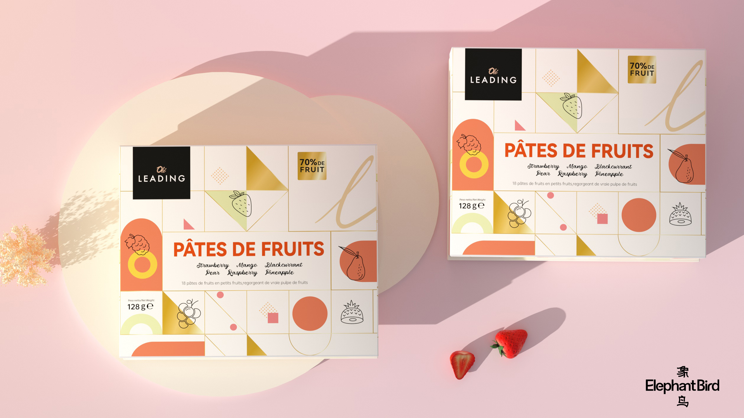 1 项目名称 象鸟xOLe LEADING法式果汁软糖礼盒包装设计 共情品牌设计 (插画/字体/包装/印刷) 2 项目介绍 珀衍君品牌由荷兰留学医学博士归国创立,依托海归研发团队,联合法国、台湾